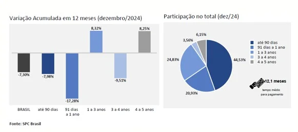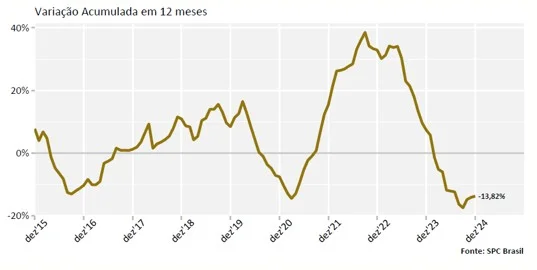 Os dados do indicador mostram que, nos últimos 12 meses encerrados em dezembro de 2024, houve uma queda de ‐13,82% no número de devedores reincidentes, aqueles que já tinham aparecido no cadastro de inadimplentes no período analisado. A comparação é com os 12 meses anteriores.