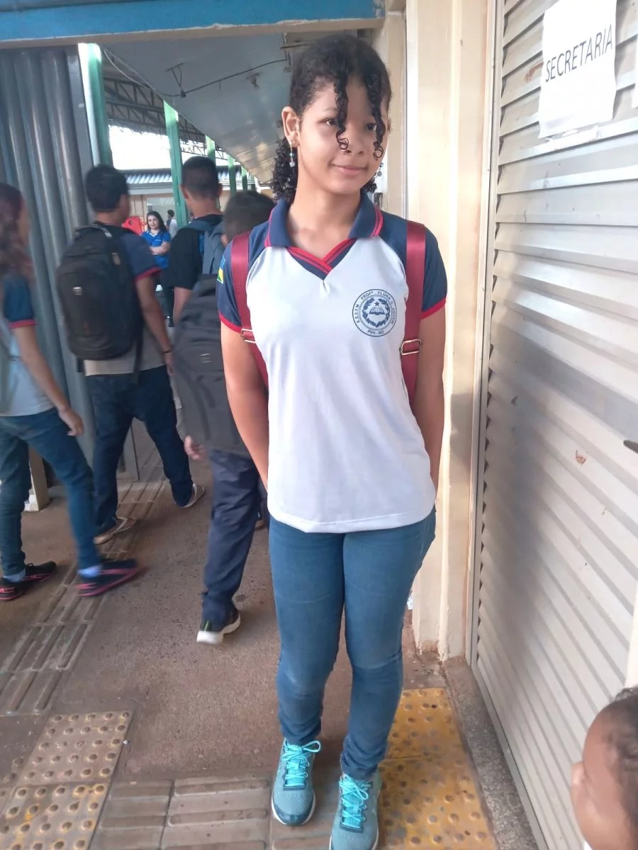 Estephany de 14 anos de idade, fugiu pulando o portão de casa no Bairro Escola de Polícia, em Porto Velho, após discutir com os pais. Ela estuda na Escola Flora Calheiros.