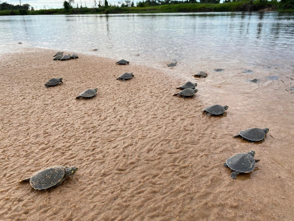As tartarugas monitoradas pelo projeto pertencem à espécie Podocnemis expansa, a maior de água doce da América do Sul, que pode atingir um metro de comprimento e pesar até 75 quilos.