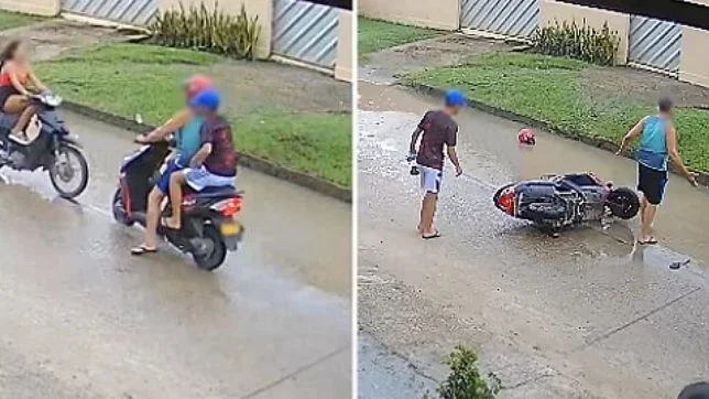 As imagens revelam que as duas motos, uma conduzida por um homem que levava um passageiro, e a outra por uma mulher, seguiam pela mesma via em direções opostas. A gravação aponta que nenhum dos condutores desviou a tempo, resultando em uma colisão frontal.