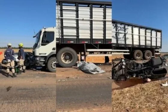 Duas pessoas morreram em um acidente envolvendo duas motocicletas, um carro e uma carreta, na manhã desta segunda-feira (25), na BR-163, em Sinop (a 480 km de Cuiabá).