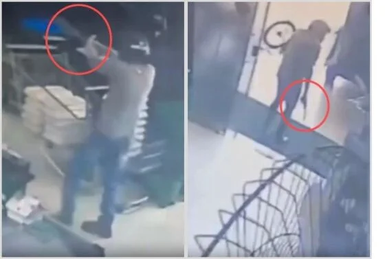 O bandido também entrou no estabelecimento atrás dele, sacou um revólver calibre .38 e efetuou os disparos. A vítima foi atingida de raspão no braço direito e no tórax.