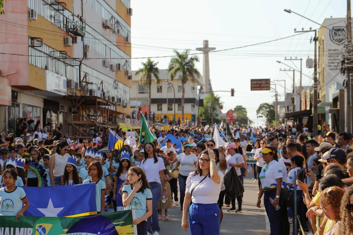 O desfile foi precedido por um cerimonial oficial, que contou com a presença do prefeito Affonso Cândido (PL), da vice-prefeita Marley Muniz (PL), do deputado estadual Nim Barroso (PSD), da deputada federal Silvia Cristina (PP), do senador Marcos Rogério (PL), além de representantes da Polícia Militar, do Corpo de Bombeiros e o secretário municipal de Educação, Robson Casula. Todas as autoridades acompanharam o desfile do início ao fim, reforçando a importância da data para a cidade.