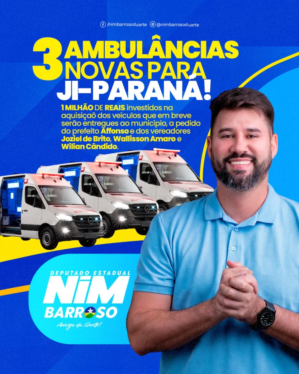Segundo as lideranças, a chegada das ambulâncias demonstra o compromisso da gestão e do Legislativo com a vida e o bem-estar dos moradores de Ji-Paraná, fortalecendo a rede de atendimento e garantindo mais dignidade aos usuários do sistema público de saúde.