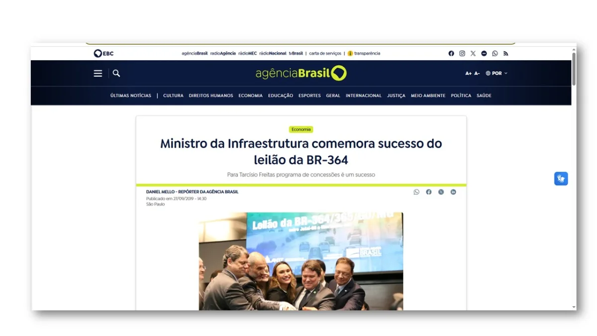 Veja a reportagem da Agência Brasil em 2019: https://agenciabrasil.ebc.com.br/economia/noticia/2019-09/ministro-da-infraestrutura-comemora-sucesso-do-leilao-da-br-364