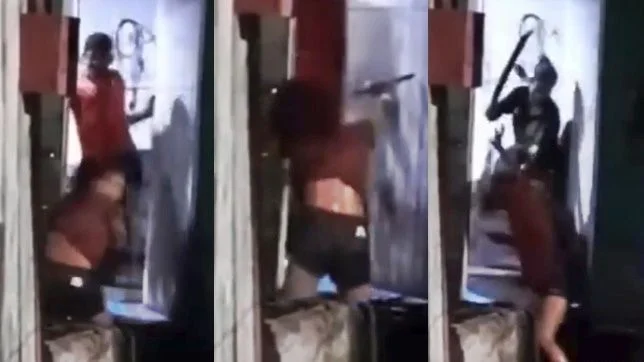 Mulher é agredida com socos, chutes e terçadadas durante briga de drogados. VEJA VÍDEO
