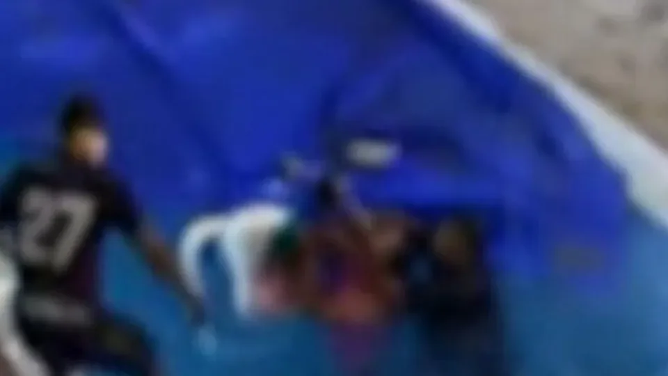 No vídeo, é possível ver que a piscina estava coberta por uma lona azul, que não estava devidamente presa. O pai lavava a área externa da piscina quando a bebê, que estava em um andador, se aproximou e caiu na água.
