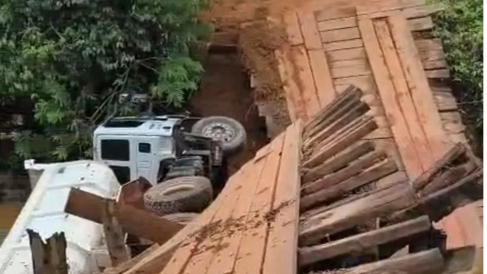 A ponte sobre o Rio Forquilha, localizada na Linha 205, na zona rural de Ji-Paraná, quebrou após não suportar o peso de um caminhão caçamba que tentava atravessá-la. Com o rompimento da estrutura, o veículo caiu dentro do rio. O motorista sofreu ferimentos em uma das pernas e recebeu atendimento.