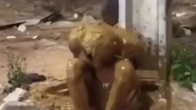 Um homem, suspeito de ser responsável por uma série de assaltos em uma cidade não identificada, teve um confronto chocante com a justiça popular. Após ser capturado por moradores enfurecidos, ele foi submetido a uma punição inusitada: foi banhado em fezes.