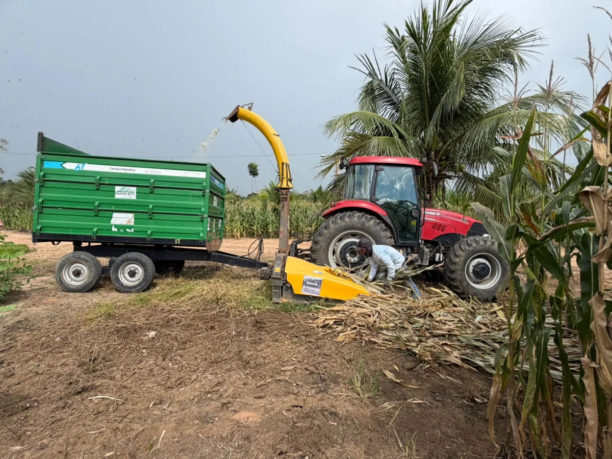 Na Linha Gasoli, setor Gleba G, o produtor rural conhecido como senhor Didi, morador da região há mais de 40 anos, foi beneficiado com o apoio da Semagri para a produção de silagem de milho. Com o uso de equipamentos como trator, ensiladeira e caçamba forrageira, foi possível produzir silagem de alta qualidade, que servirá como suplemento alimentar para o rebanho leiteiro, especialmente durante o período de estiagem na região.