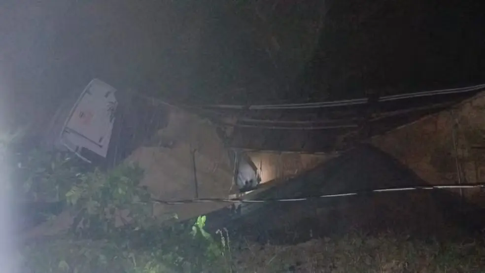 Carreta tombada em Cadeias do Jamari — Foto: Reprodução/redes sociais