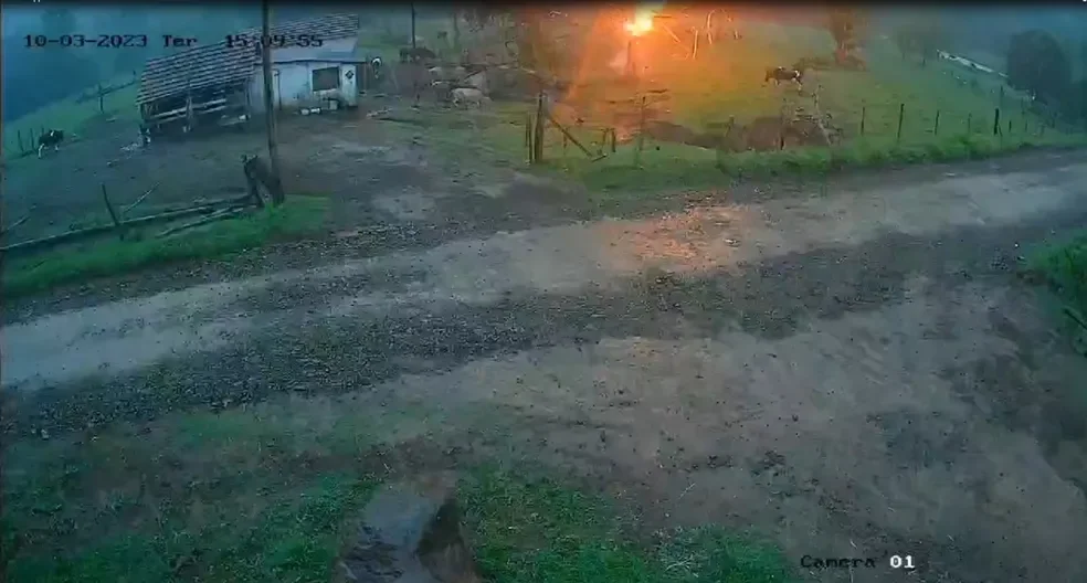 A sitiante relatou que estava na varanda da sede quando viu a descarga elétrica descer do céu e atingir a área onde os animais estavam. O clarão foi seguido de um estrondo intenso, que fez a estrutura da casa tremer.