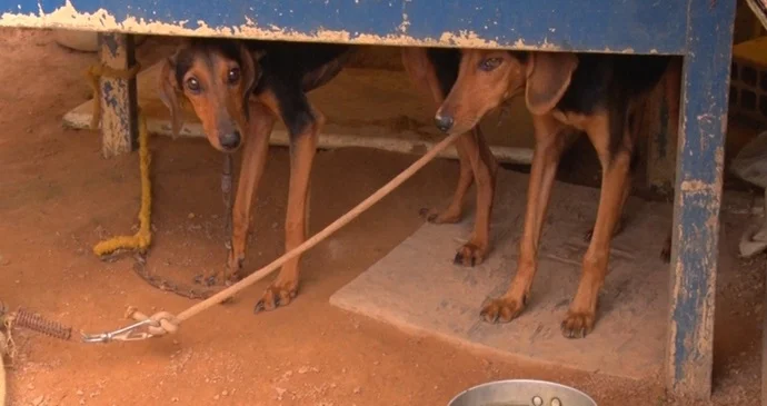 Vários cães foram encontrados amarrados e com fome (Rede TV)