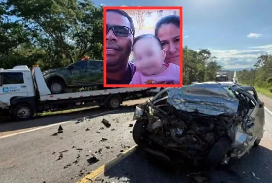 Maria Jacqueline Meneguete, Fábio do Nascimento Silva e a filha deles, de apenas 9 meses, morreram após um grave acidente registrado na BR-070, na cidade de Poconé (104 km de Cuiabá), na Baixada Cuiabana.