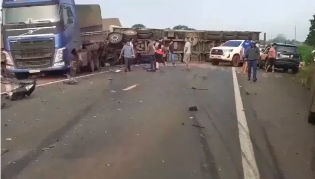As primeiras informações indicam que há pelo menos duas pessoas mortas no local. A colisão envolveu um caminhão, uma carreta e um carro de passeio, modelo Vw Fox, provocando grande impacto e mobilizando equipes de emergência.