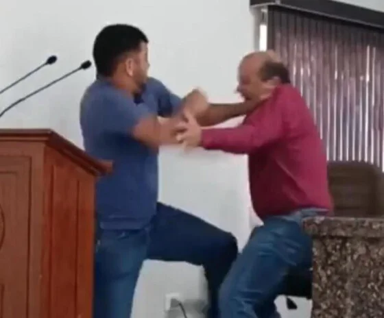 Nisso, Geraldo se levanta da cadeira e vai pra cima de José Lucas, que revida. Eles trocam socos e é necessário que colegas separem os vereadores.