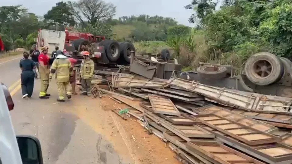 A carga se desprendeu durante o trajeto, fazendo com que o motorista perdesse o controle do veículo, o que resultou no tombamento da carreta. A cabine do caminhão ficou completamente destruída devido à força do impacto. Apesar da gravidade do acidente, o condutor sofreu apenas ferimentos leves, sendo considerado um grande livramento diante das circunstâncias.