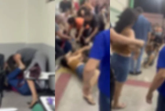 Em outro vídeo, já no pátio da instituição, uma terceira mulher, que usa uma camisa marrom, também aparece caída no chão. Não é possível identificar se ela tentava separar a confusão ou se também participava da briga.