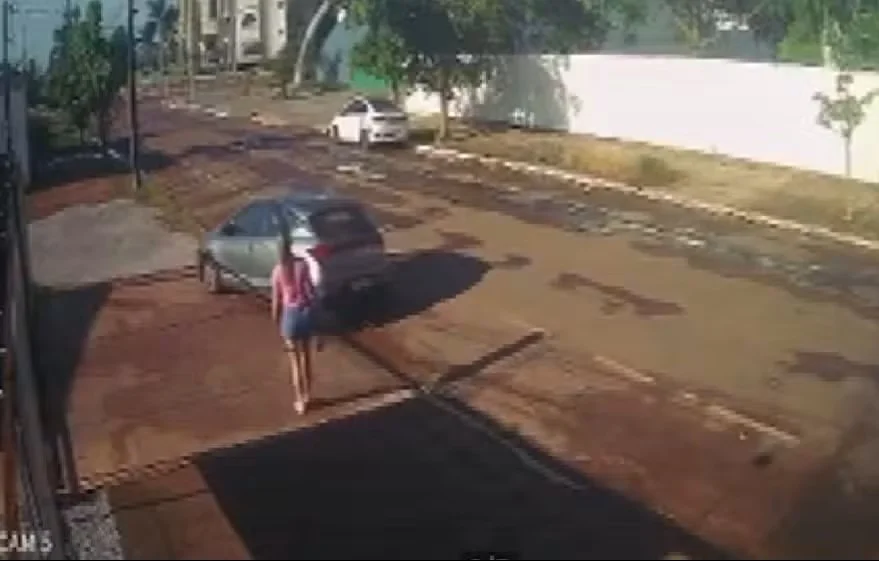 Imagens de câmera de segurança mostram quando um carro blindado sobe na calçada em que a jovem estava. Em seguida, a vítima tenta fugir, mas é alcançada pelo ex-marido, de 36 anos, que a obrigou a entrar no veículo (assista acima).