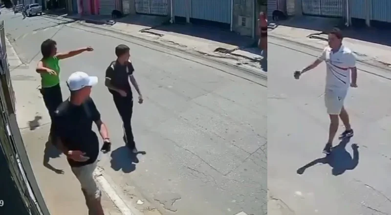 A cena, registrada por câmera de segurança, viralizou nas redes e chocou a vizinhança. As imagens mostram a vítima tentando escapar em ziguezague, o corpo já enfraquecido pela lâmina fincada.
